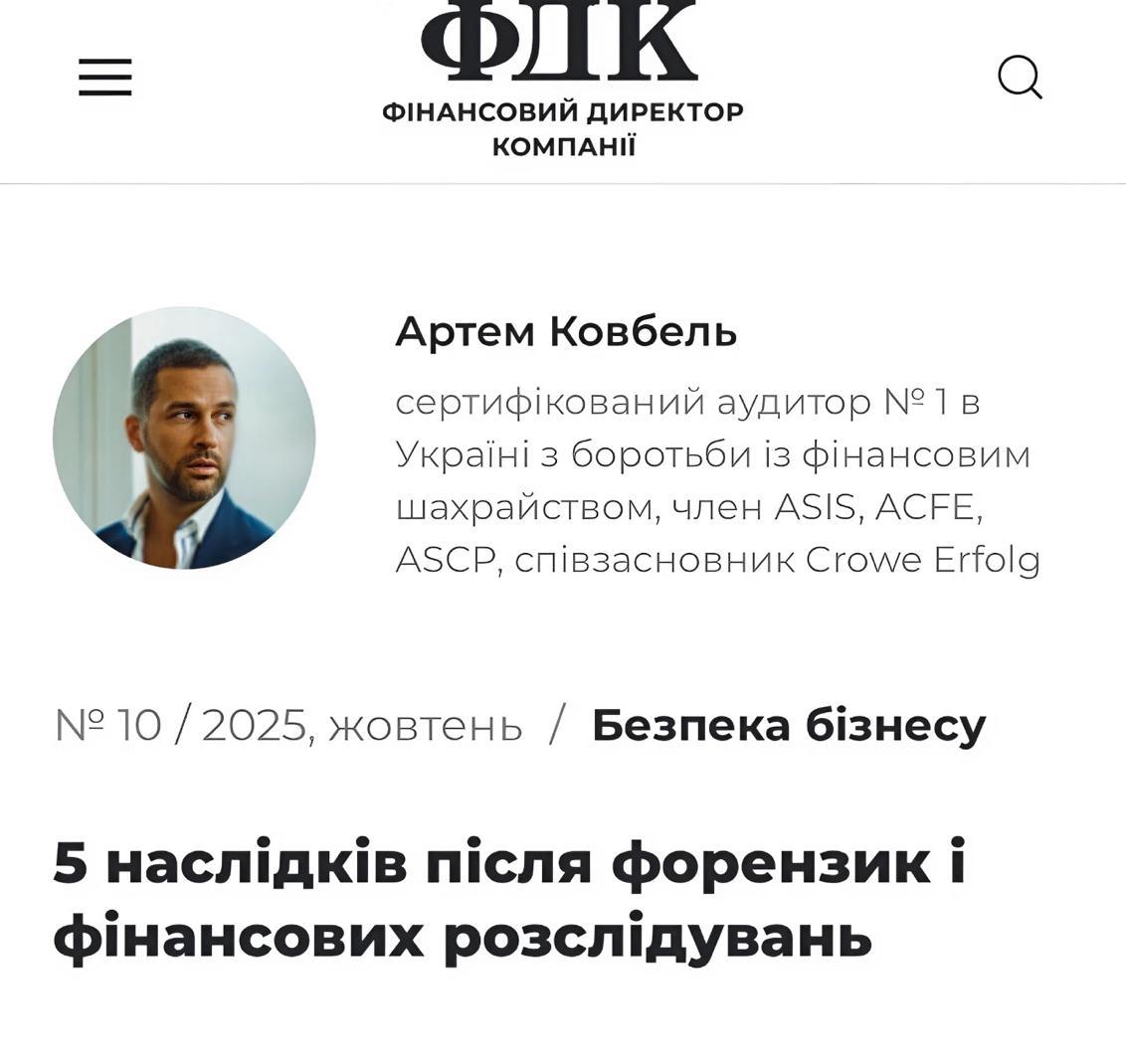 Ковбель Артем поділився своїм досвідом в частині форензик із профільним українським виданням для фінансових директорів - журналом Фінансовий директор.